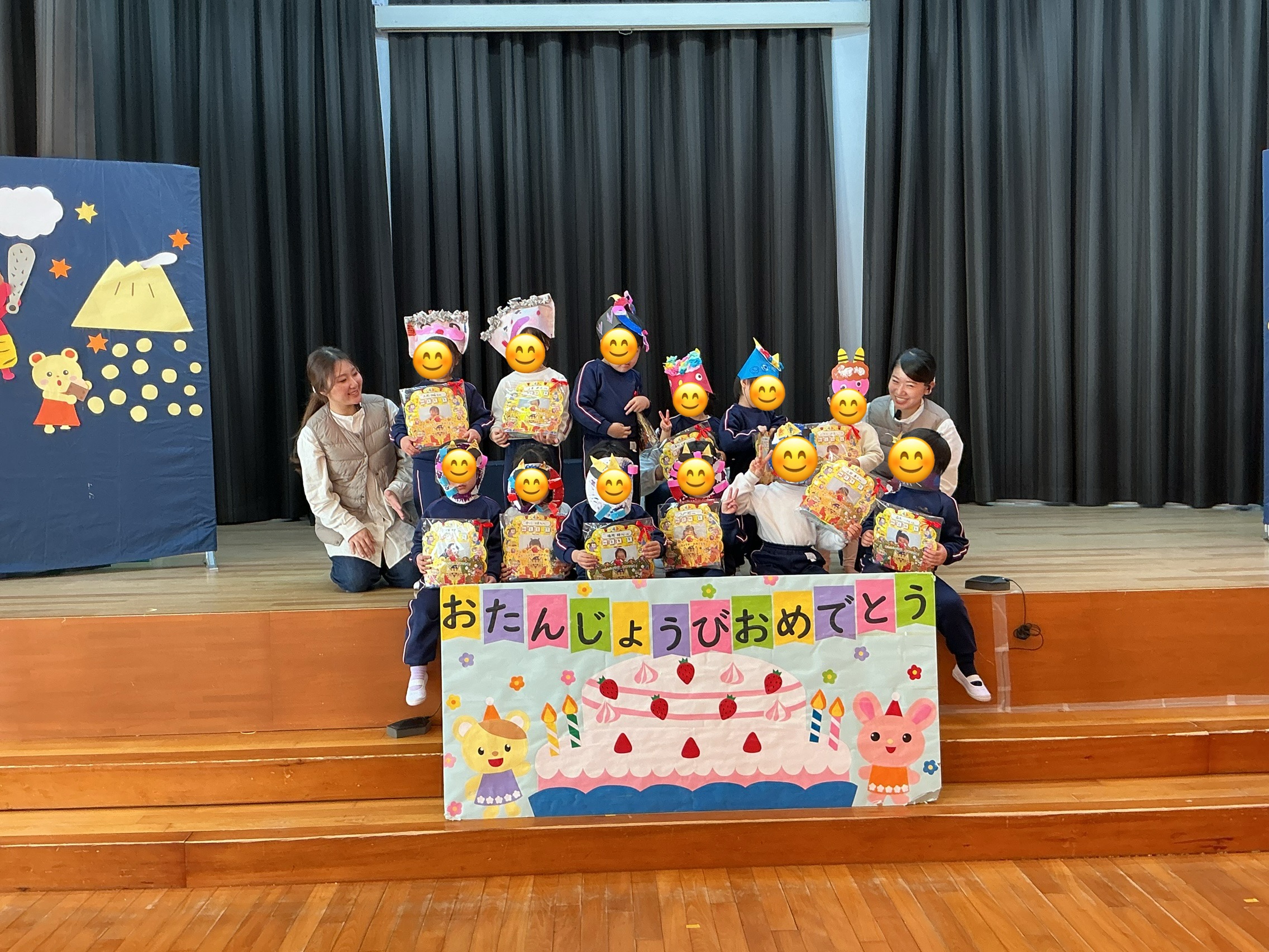きりん組のSYくんとNHちゃんは誕生日が今日でとても嬉しそうでした。