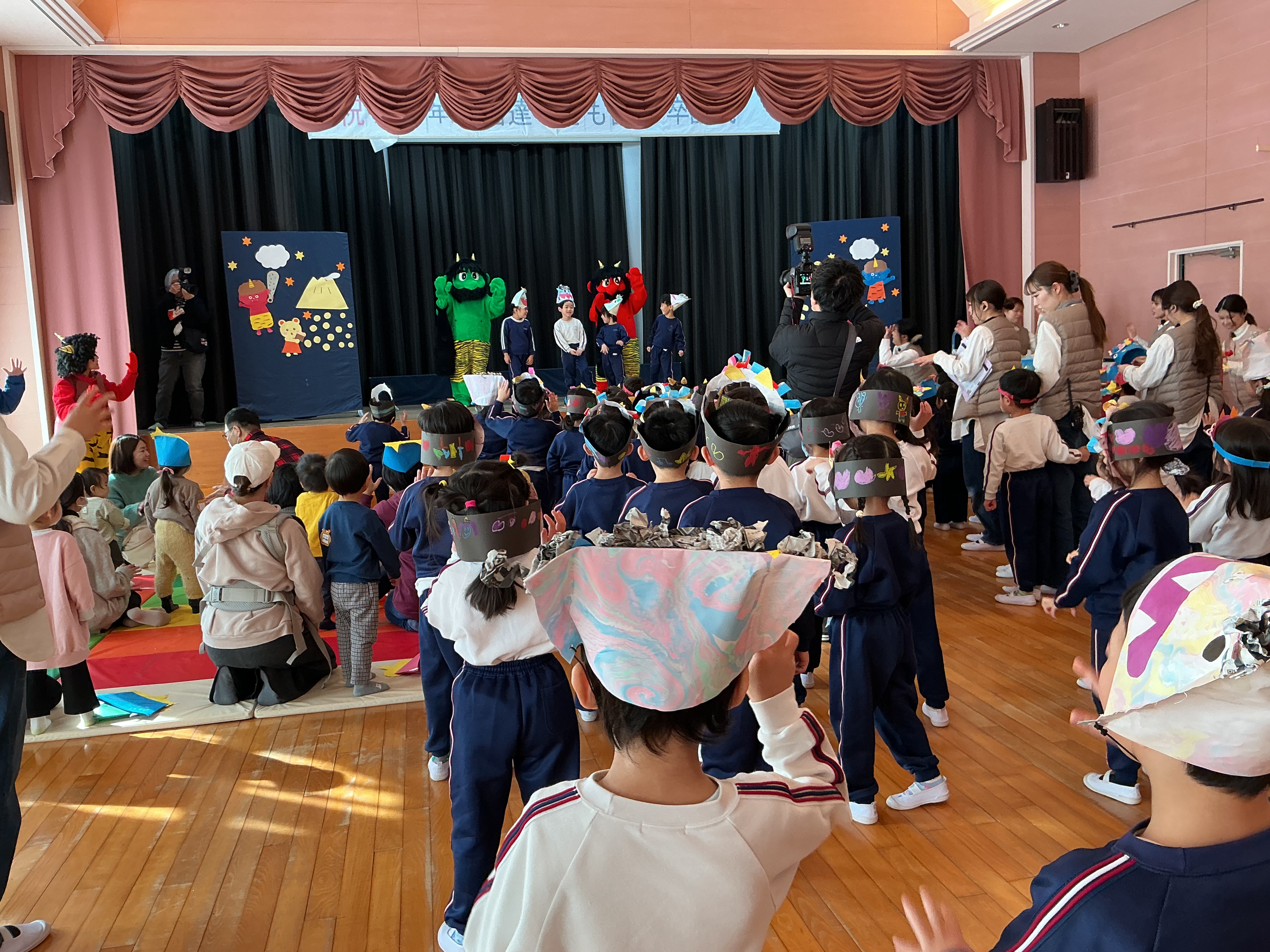 誕生会後は、赤鬼・緑鬼と「鬼のパンツ」を踊りました。