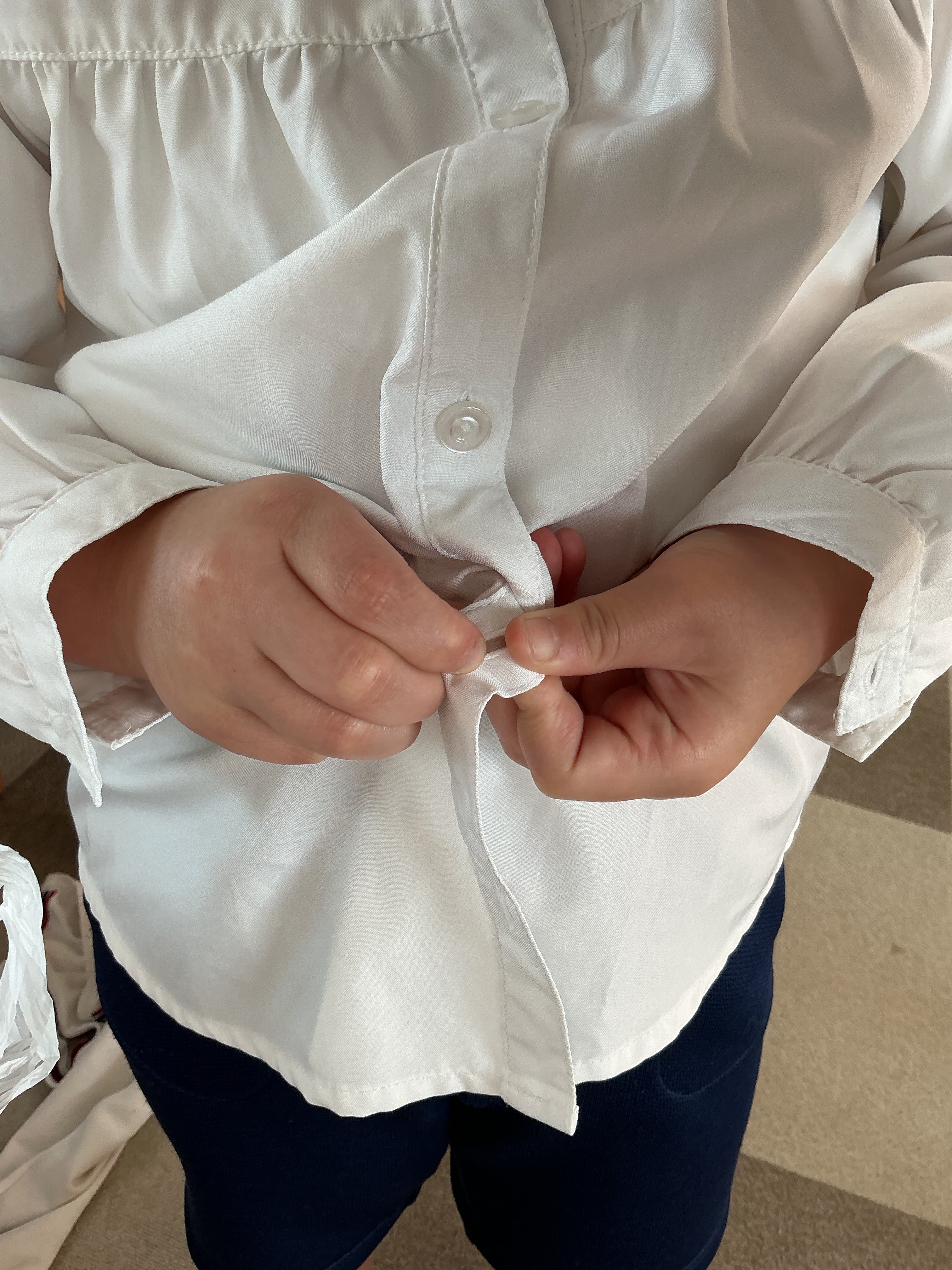 ワイシャツのボタンかけを難しそうにしているお友だちにそっと手を貸してあげていたFKくん!