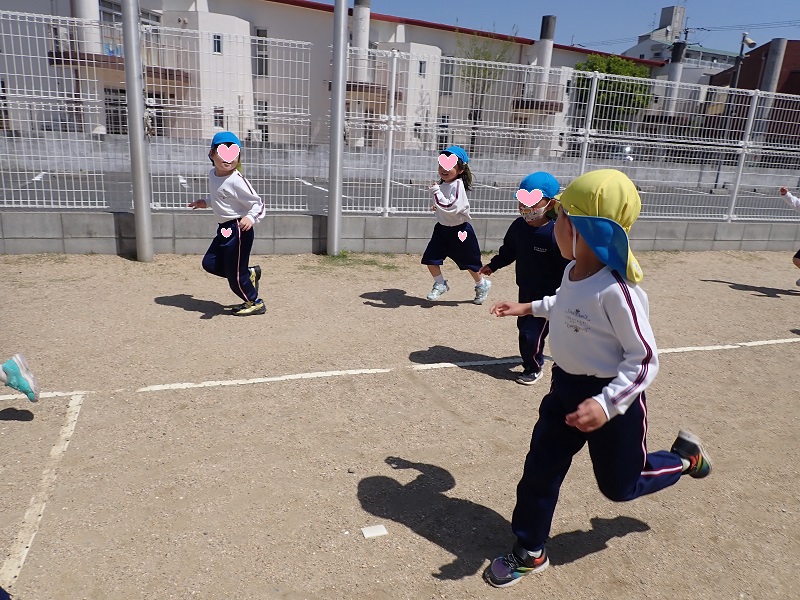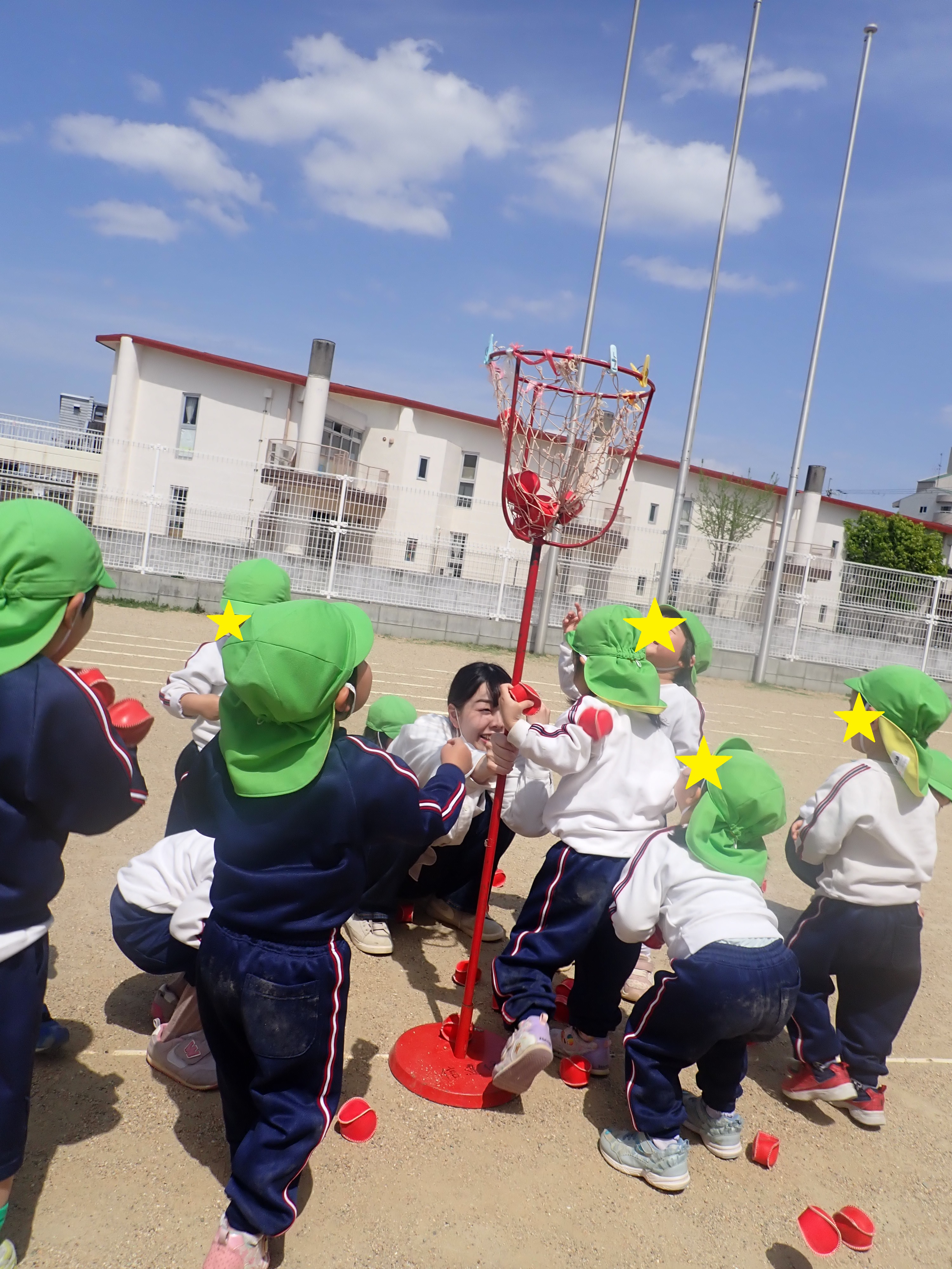 気温も春らしく温かくなってきたので、園庭遊びも目一杯楽しんでいる子どもたちですよ。