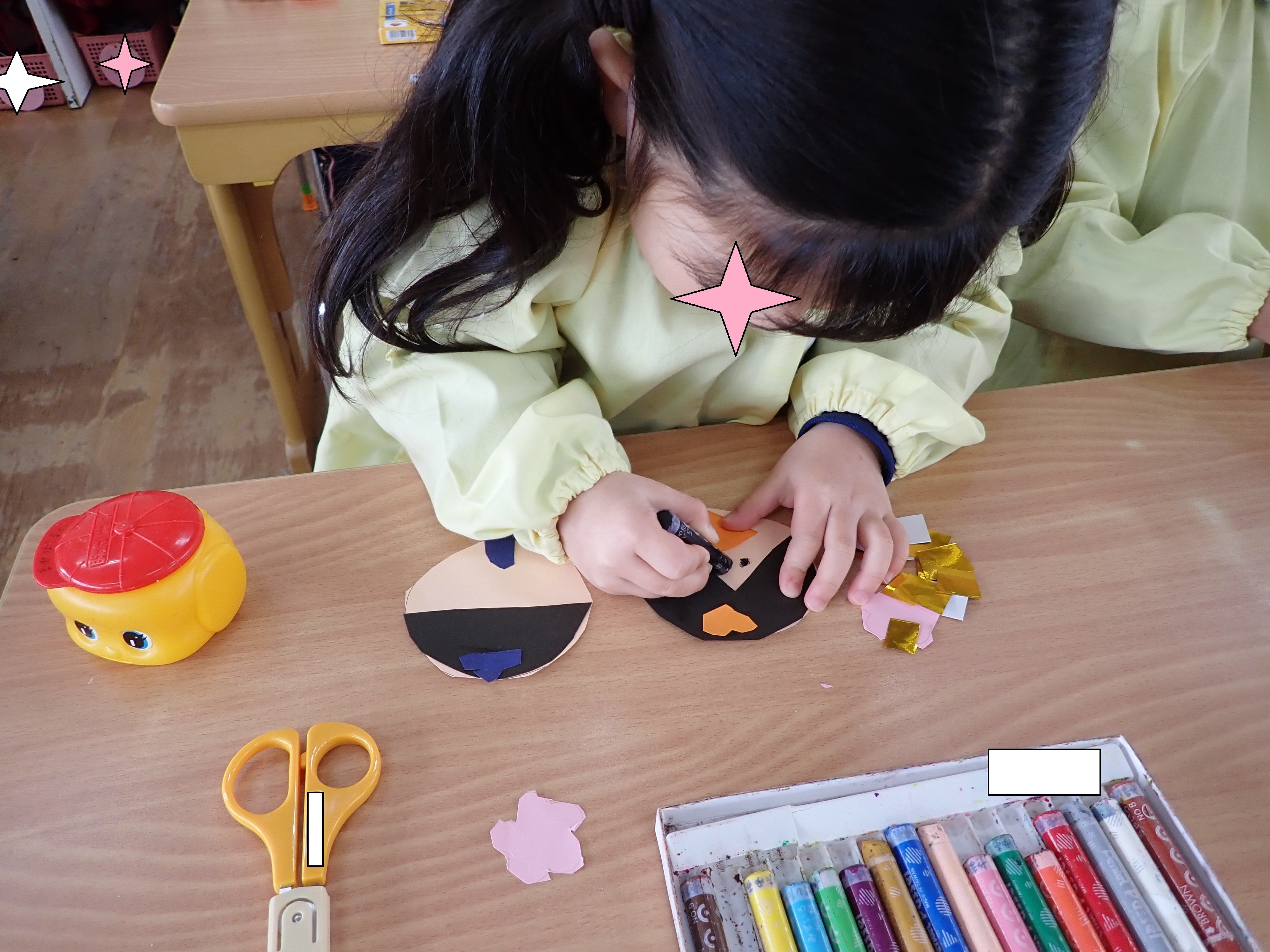 KMちゃんはパーツを切りながら「あかりをつけましょボンボリに~♪」とひなまつりの歌を歌っていました( *´艸`)