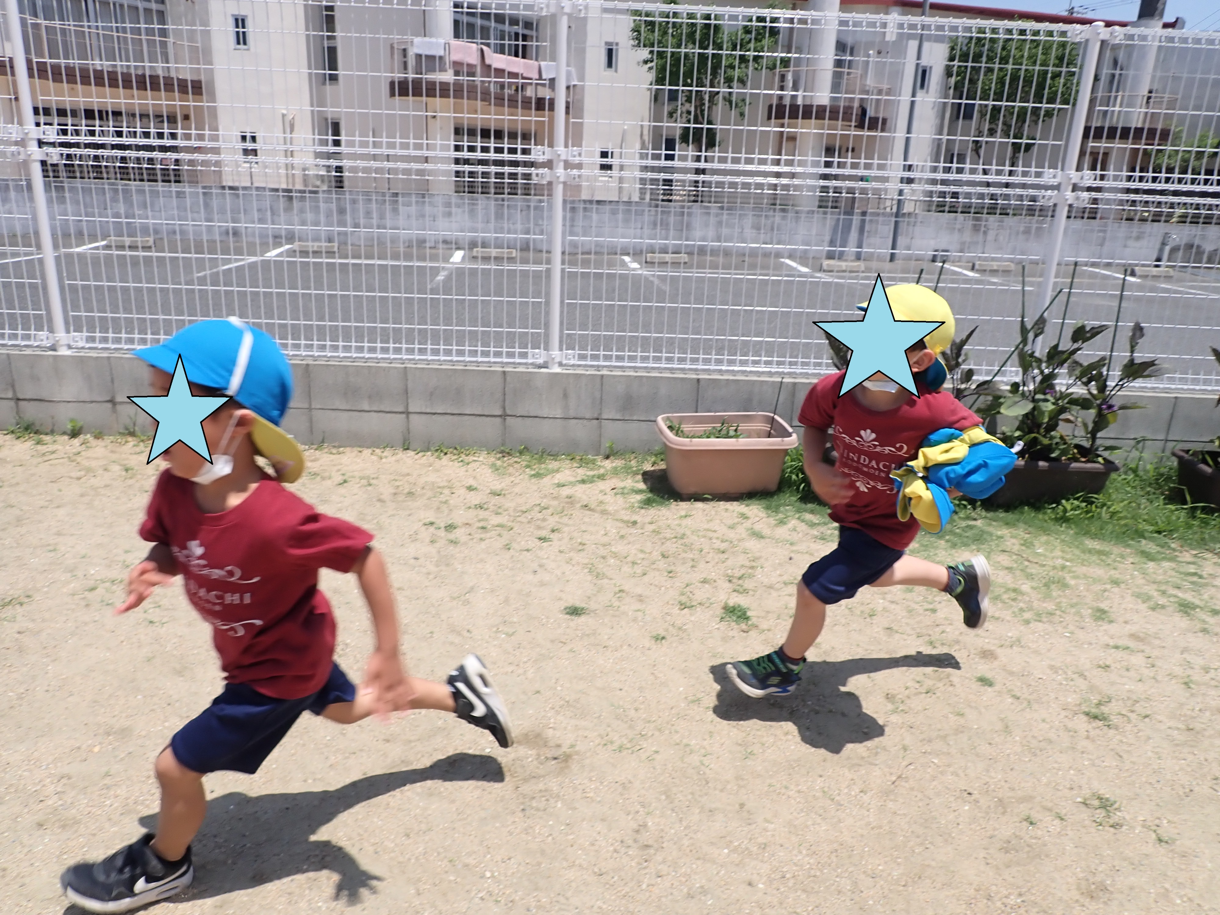 逃げるスピードが速いKK君が鬼に帽子を取られてしまいました。