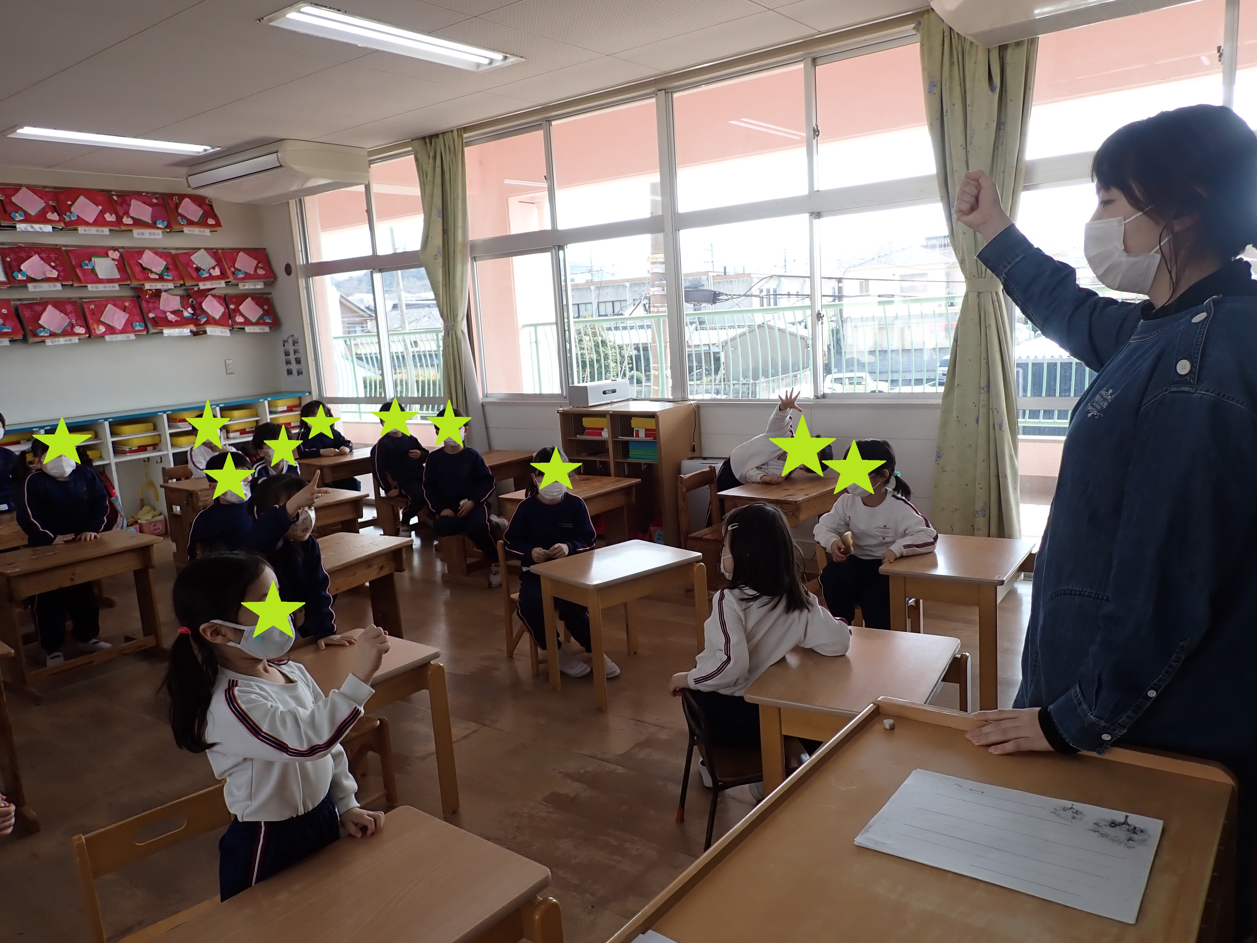 保育者が前でジャンケンをして、負けたら座るというルールです。