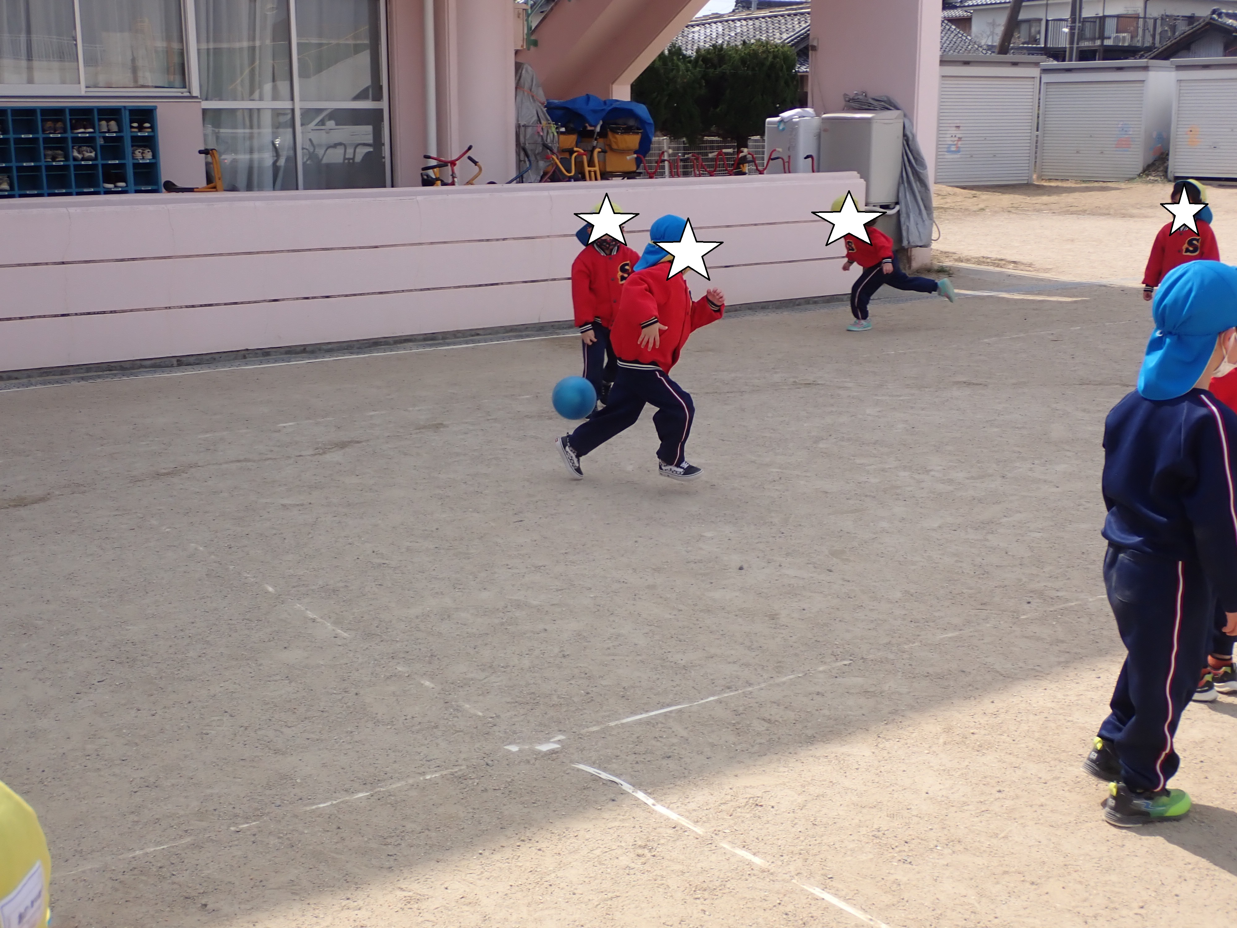 中当てが始まるとみんなボールを投げたくて線の中に入ったり、ボールの取り合いをしていたり…(;´∀`)