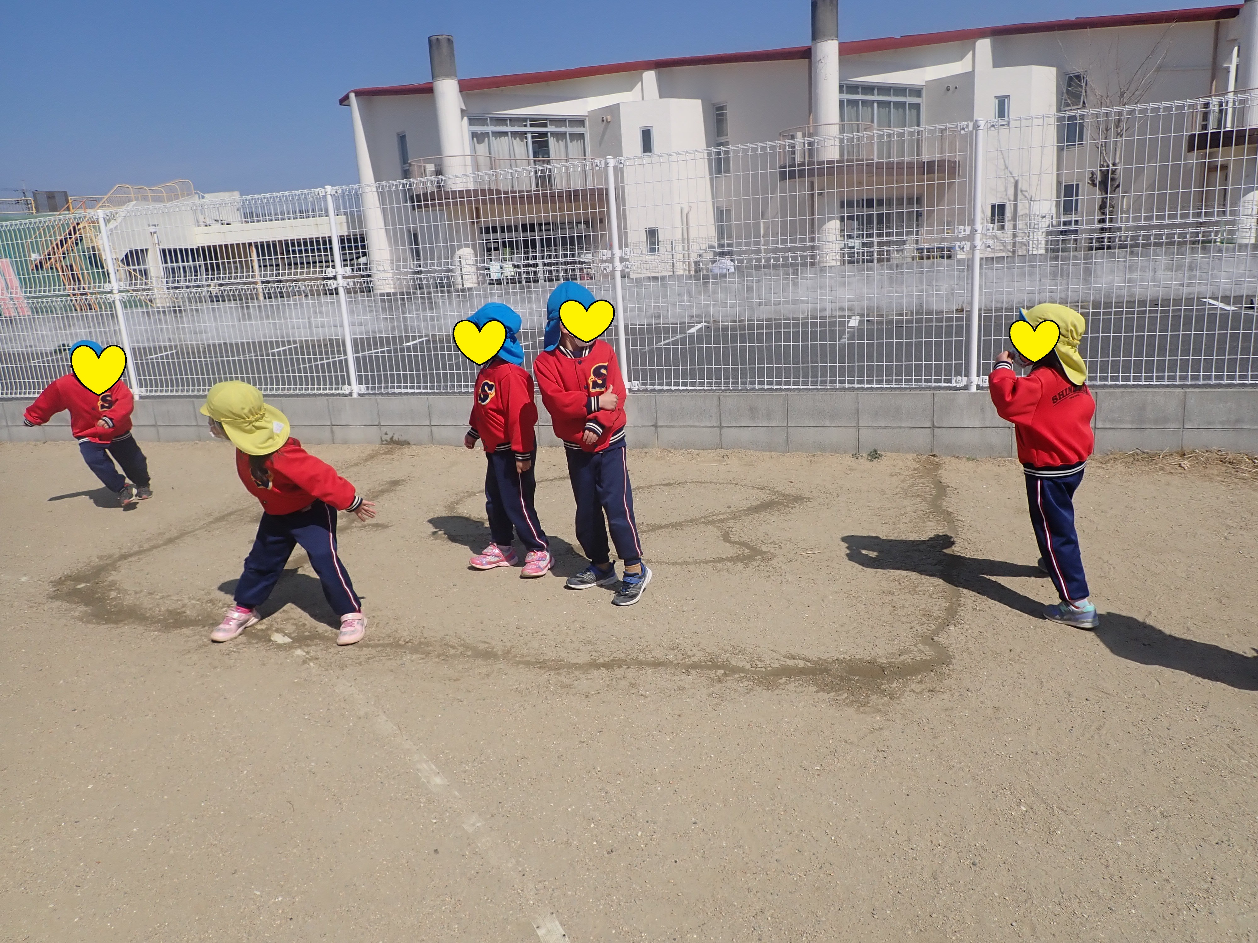 園庭に出るとHEちゃんが「今日暖か~い!お外でいっぱい遊びた~い」と言っていました。