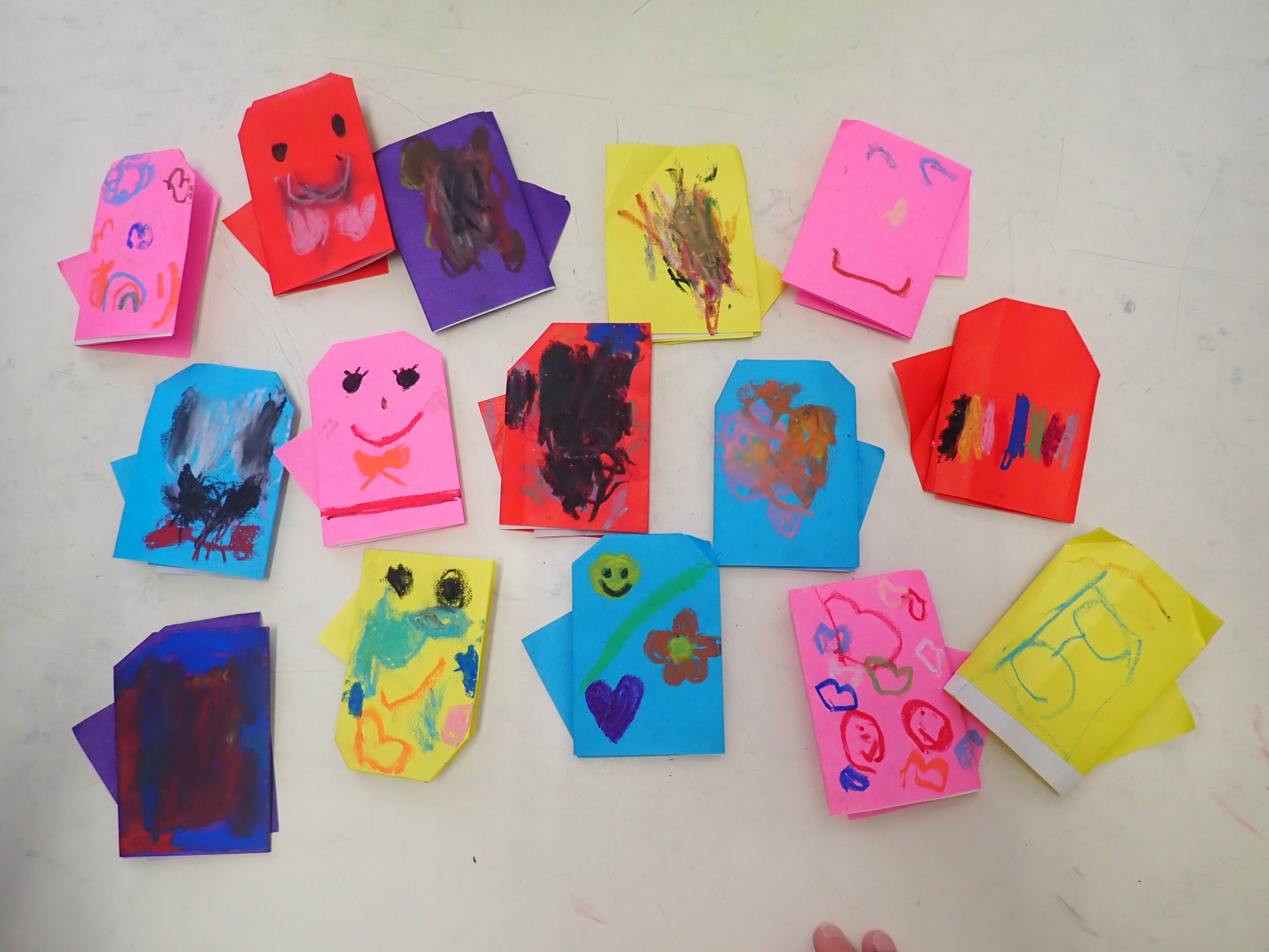 今日は折り紙で手袋を作りました。