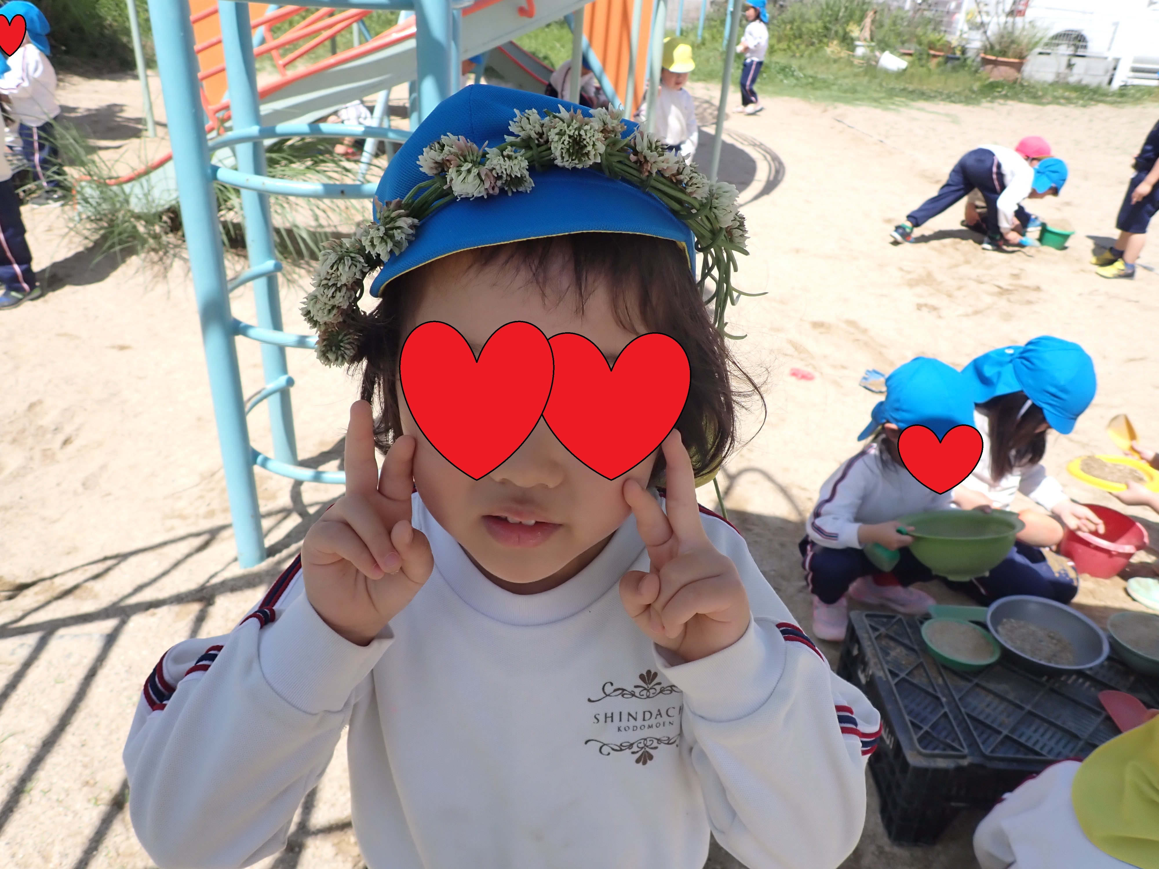 KAちゃんは砂場に落ちていた花冠を見つけて嬉しそうに見せに来てくれました(^O^)/