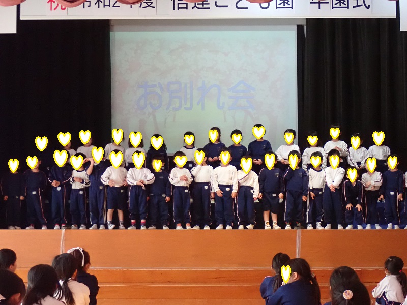 これまで一緒に過ごしたらいおん組さんにありがとうの気持ちを込めて、ぱんだ組から「あしたはははれる」きりん組からは「星影のエール」の歌のプレゼントを送りました。