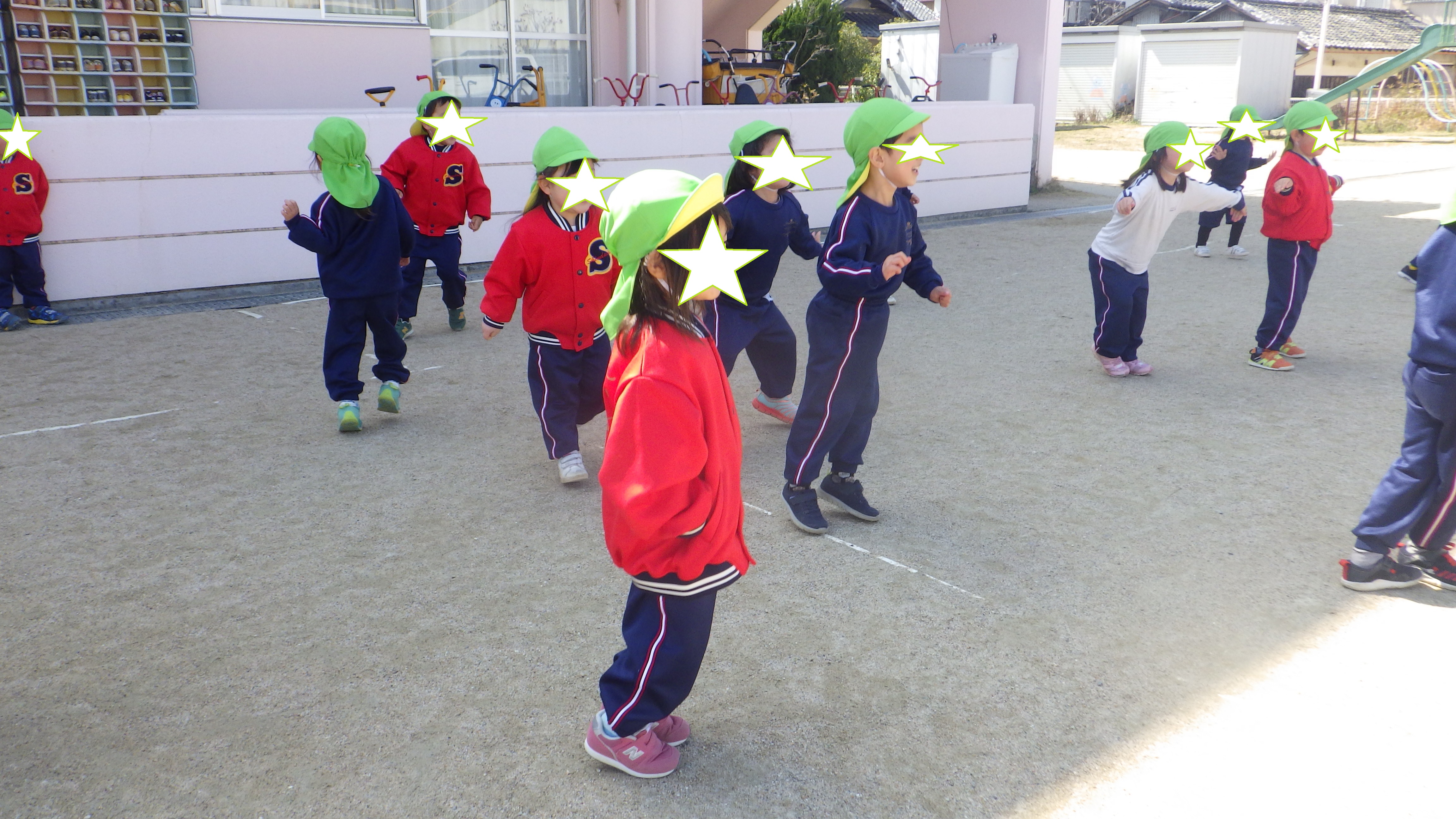 今日は園庭で”だるまさんが転んだ”をしました。