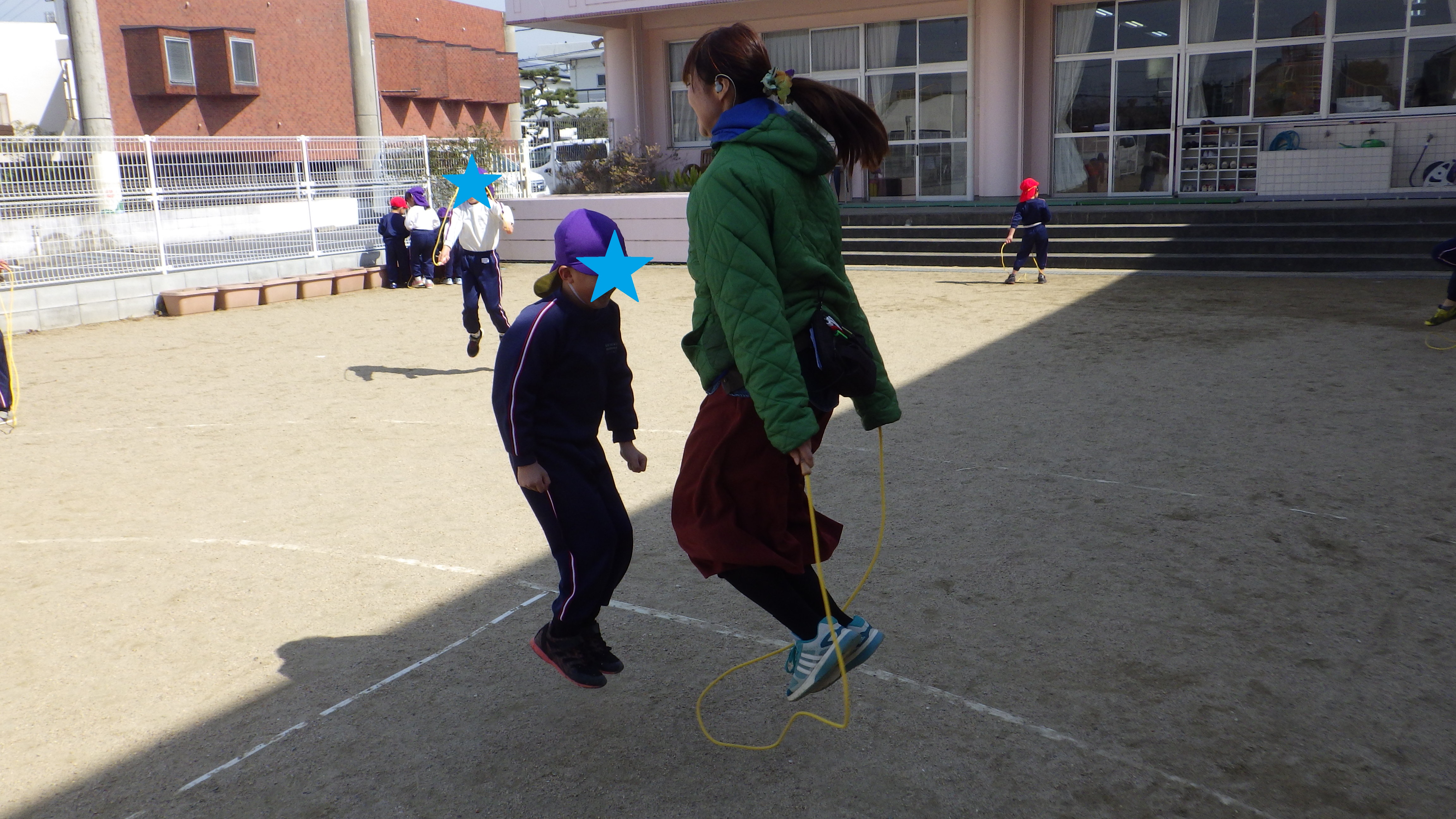 コスモスポーツクラブの黒川先生も来て下さり、一緒に跳んでくれたり、縄跳びを使って☆型をつくる方法も教えてくれました!!