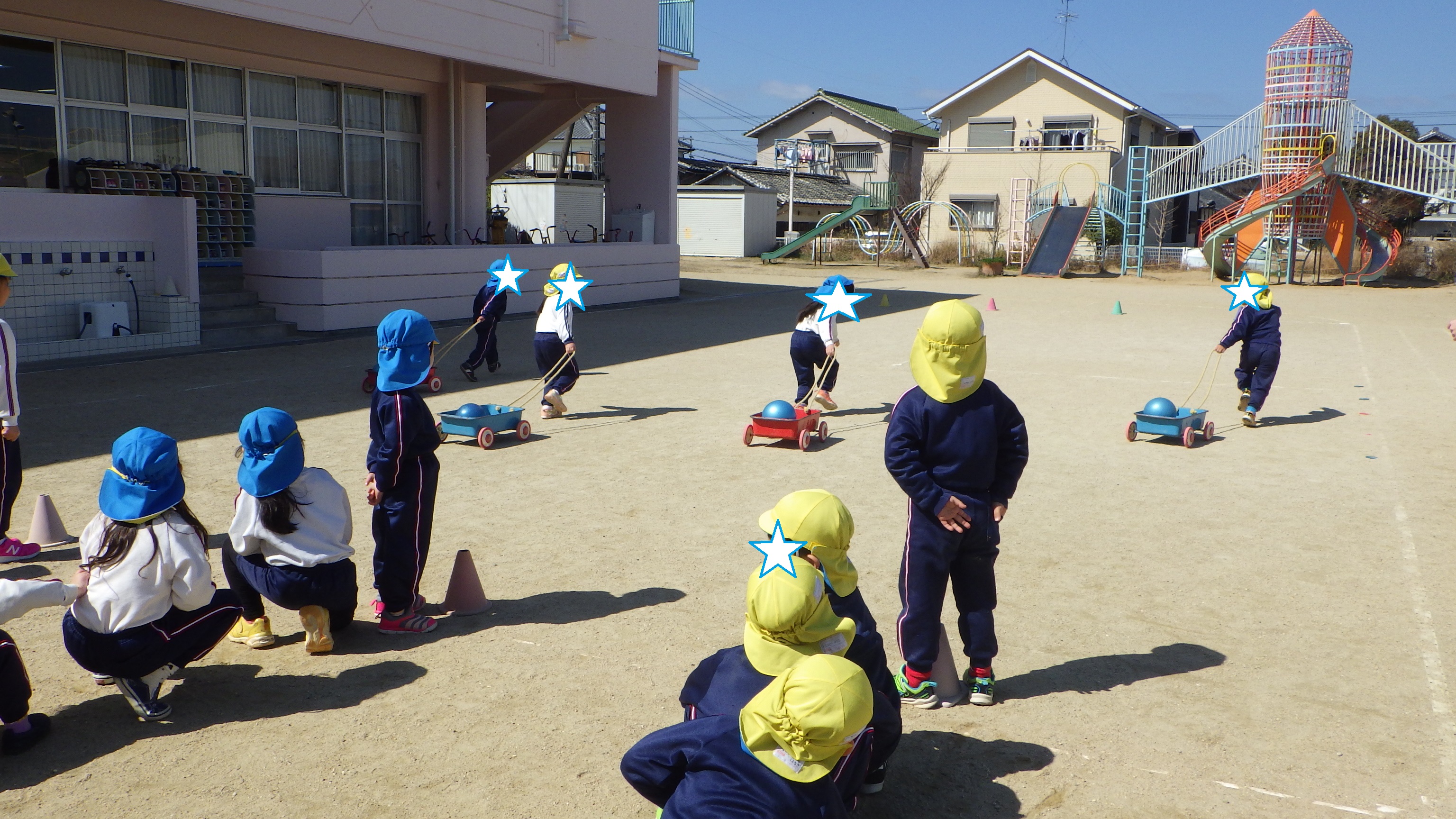 中には運び終わって次の子に渡す時に、台車の向きを変え、次の子が引きやすいようにしてくれている姿も見られ、心の成長を感じました( *´艸`)