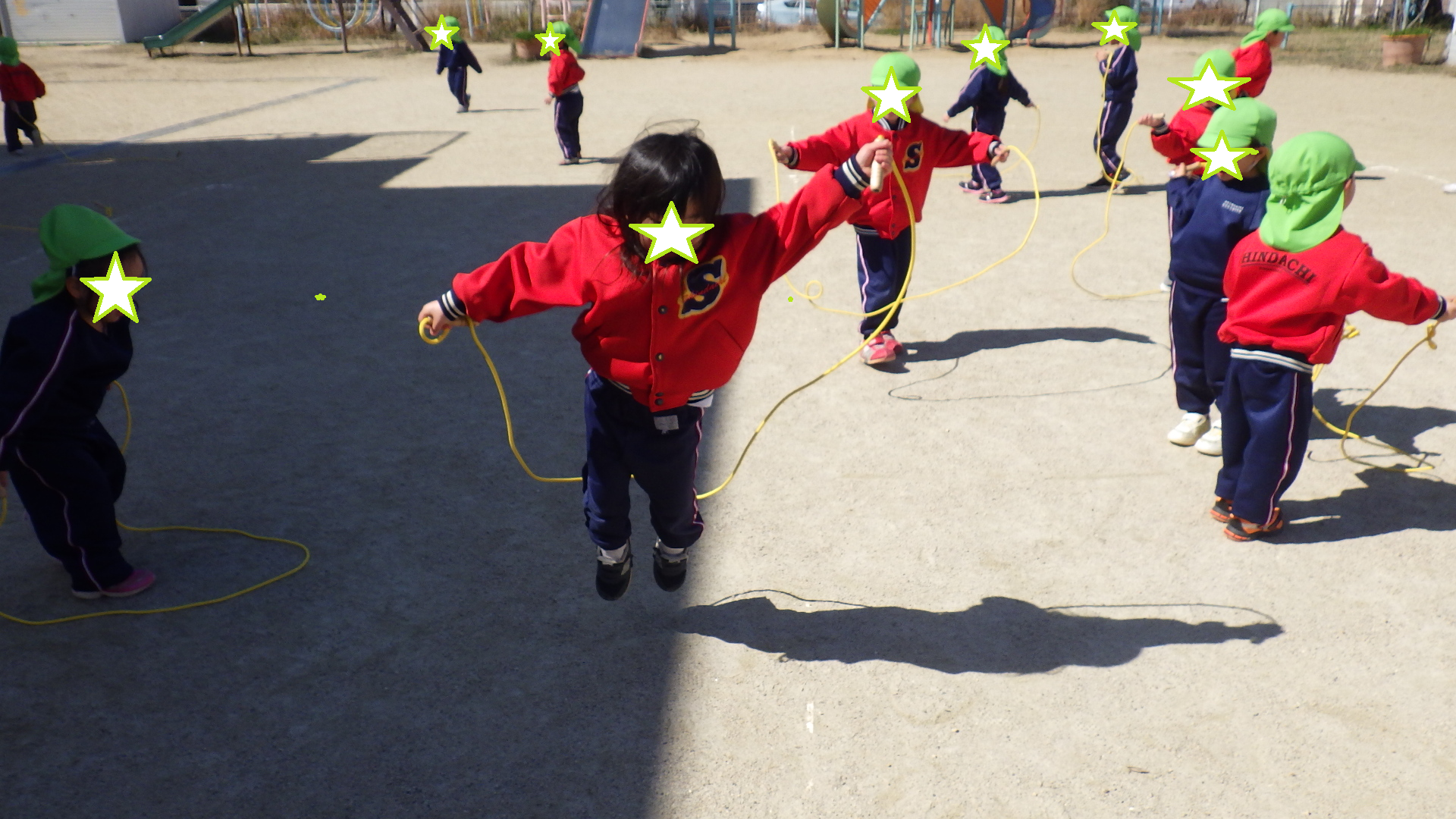 今日はとても天気が良かったので、園庭で縄跳びをして遊びました☆彡