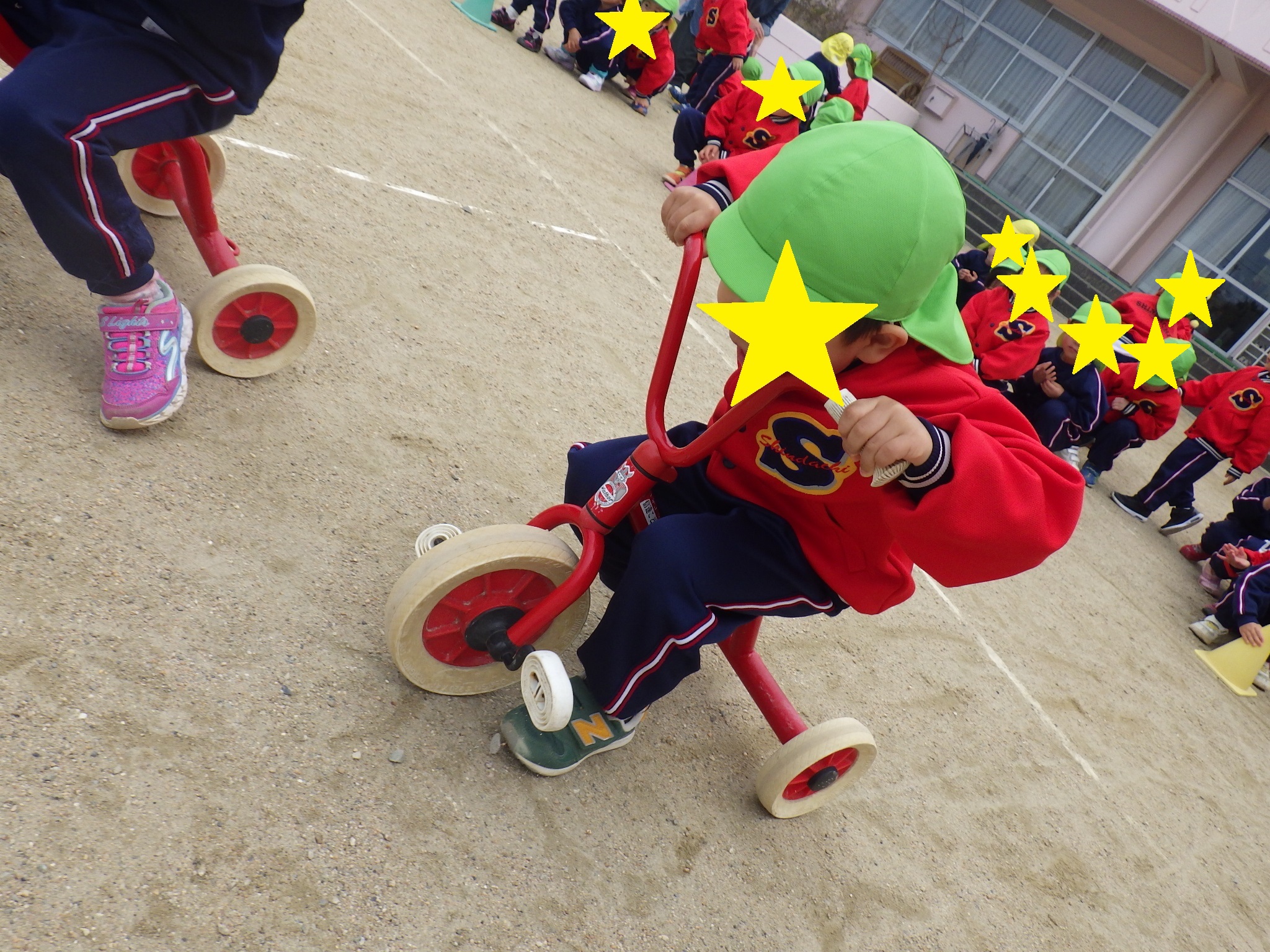 今日は、ぱんだ組になって2回目の三輪車競争をしました。